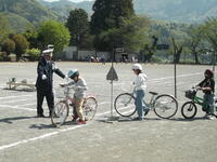 5月1日(木)に警察官の方や交通指導員の方、役場の方を指導者としてお招きして全校で交通安全教室を行いました。1・2年生は校外に出て、正しい道路の歩き方や横断の仕方について、実際に道路を歩きながら教えていただきました。3・4年生は、校庭で正しい自転車の乗り方について、実際に自転車を運転しながら教えていただきました。5・6年生は、自転車の危険性や交通ルールの確認、危険を予測した安全な乗り方などについて、DVDを視聴しながら学びました。自転車を貸していただいた保護者の皆様には、ご協力ありがとうございました。