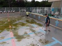 6月4日(水)に5・6年生とPTAの奉仕作業参加の方々が協力してプール清掃を行いました。この日は晴れていて気温も高く、掃除に適した気候でした。一生懸命に作業に取り組んでもらい昨年度よりも短時間で清掃が完了し、きれいなプールがよみがえりました。保護者の皆様のご協力に感謝いたします。
